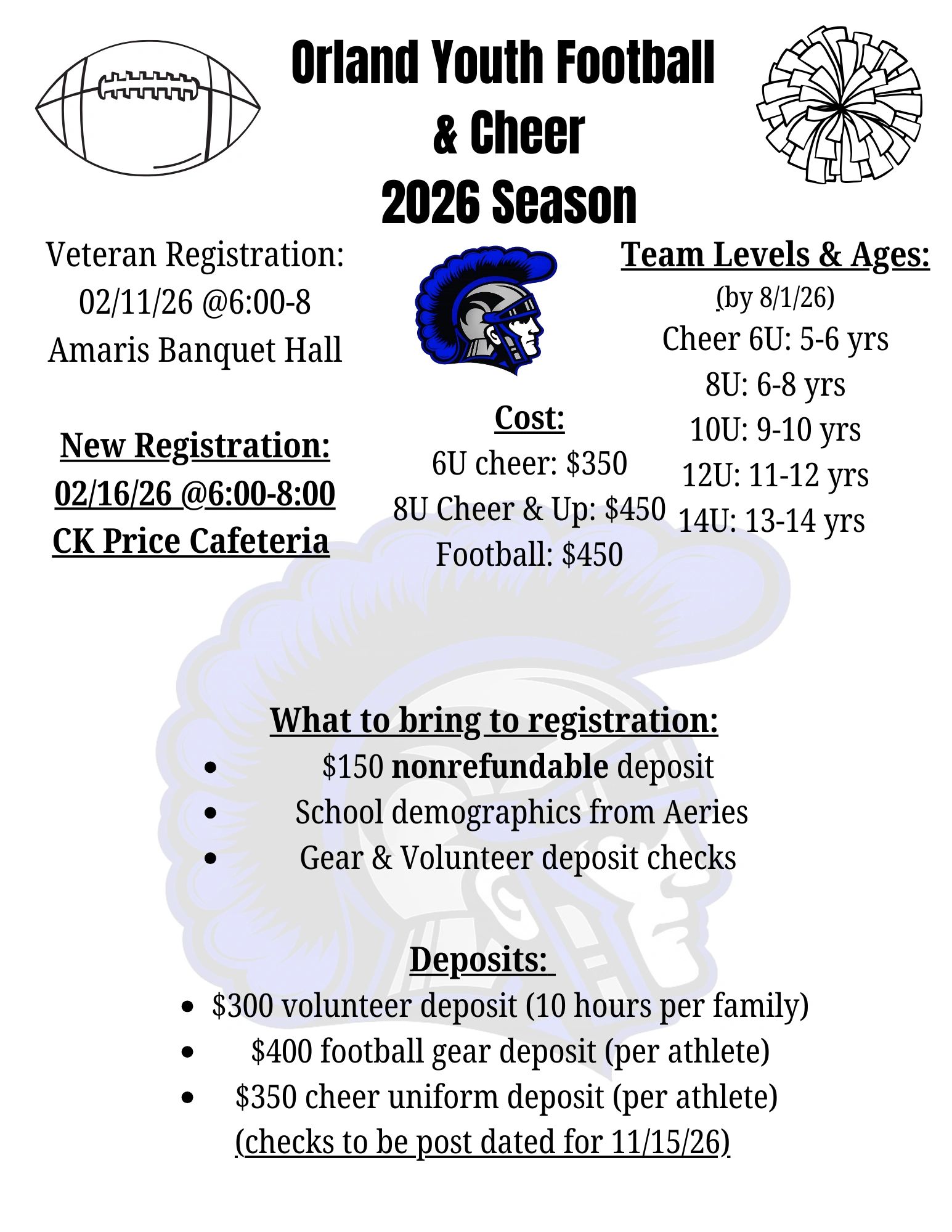 Registration $450 all football levels (ages by 8/1/26) REGISTRATION CLOSING JUNE 1ST